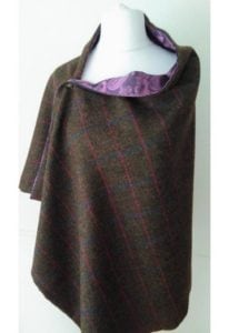 Deep Wine, Navy and Green Tweed Cape with Pure Silk Equestrian lining