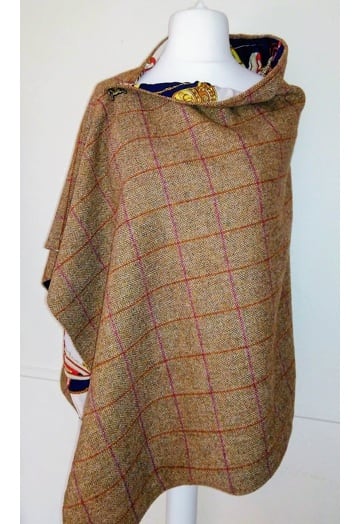 Chestnut Brown Tweed Cape with Hermes Style Lining
