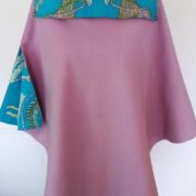Dressy, blush rose pink warm, wool cape, 2 way wear, fully lined in contrasting aqua / pink horse lining, with matching, double inlay / silver buttons.