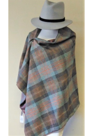 Sky Blue & Cinnamon Check Tweed Cape with Paisley Lining