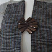 Sumptuous two tone tweed coat in pale dove blue with contrasting navy/brown check, fully lined in luxury cream brocade print. Art deco two piece front fastener and matching back half belt.