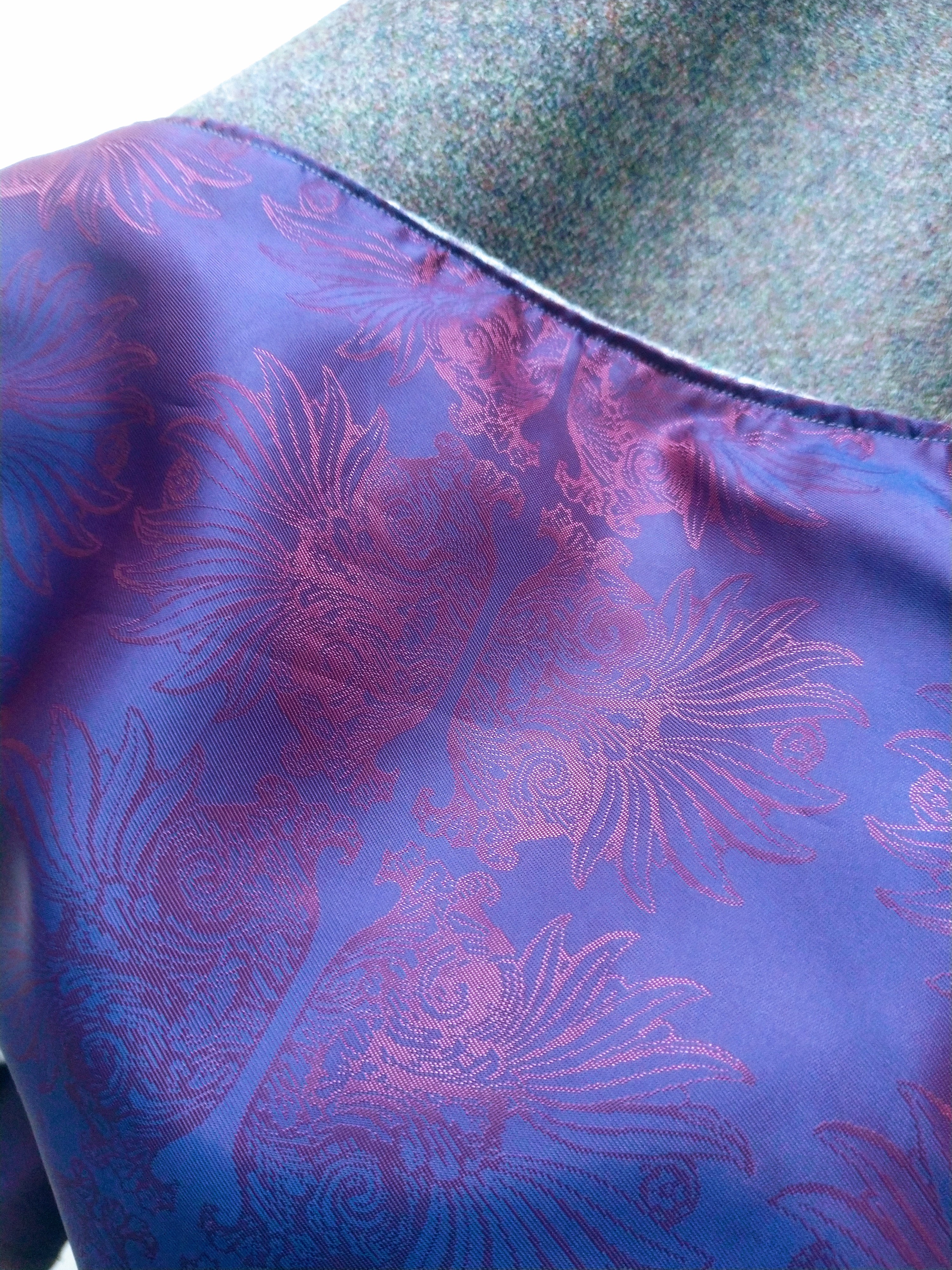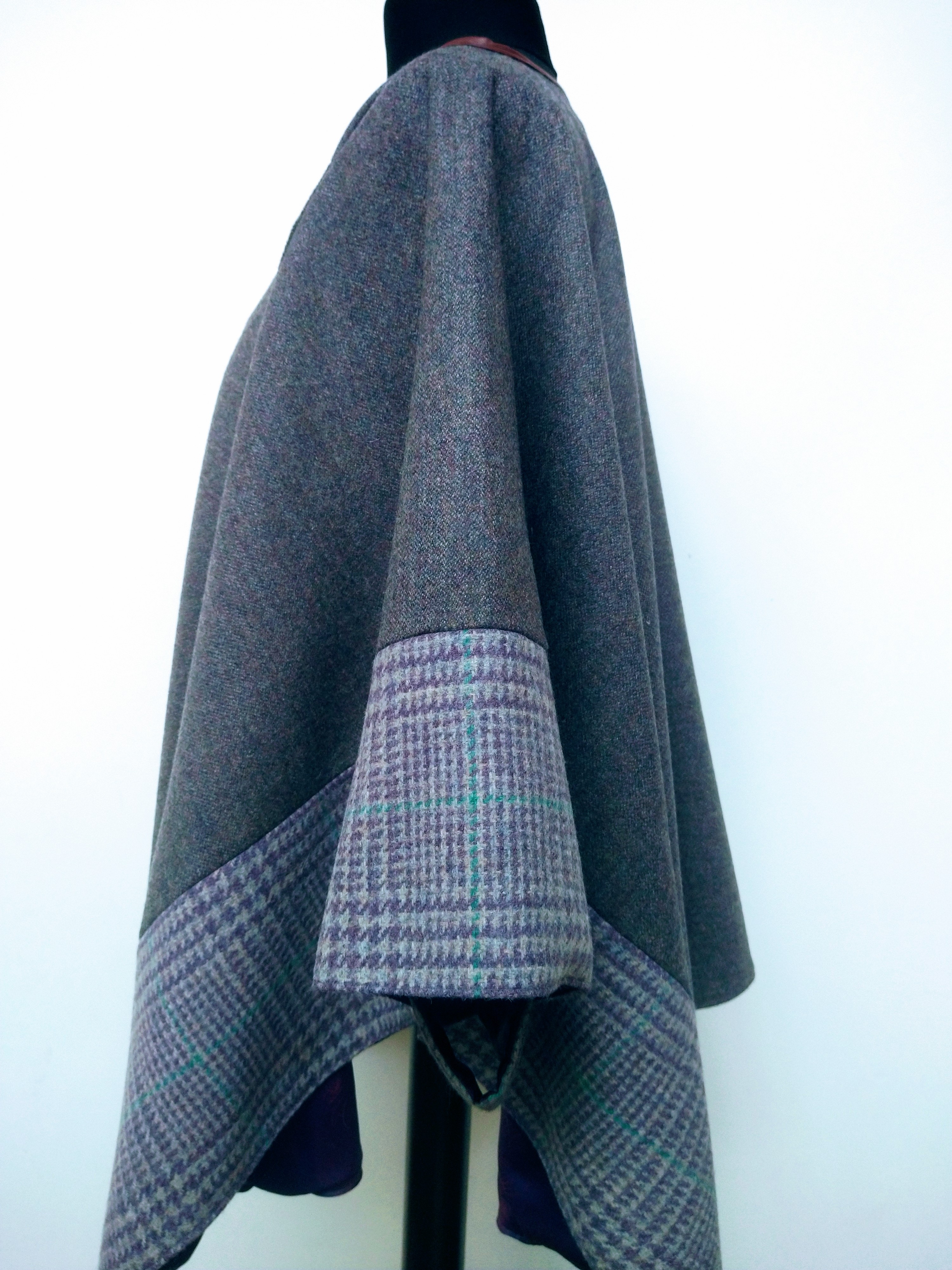 Warm Tweed Cape in Muted Purple Shades and Lilac Check Trim with Silky Lining