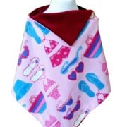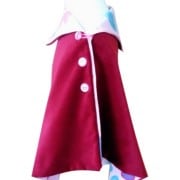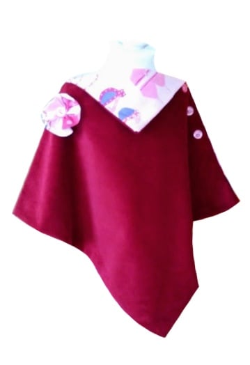 Child’s sumptuous, raspberry rich velvet cape, fully lined with all things girly theme. Shoulder flower rosette and 3 buttons.