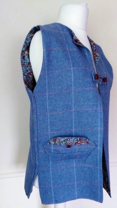 Powder Blue Tweed Gilet with Paisley Lining